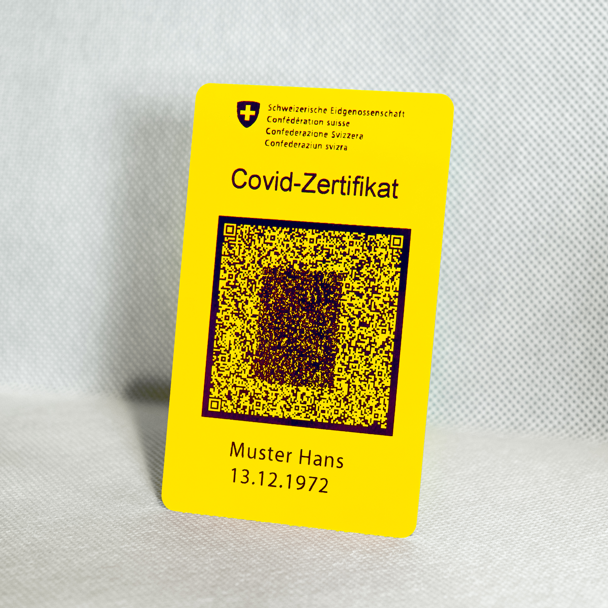 Covid-Zertifikat im Kreditkartenformat – Gelb